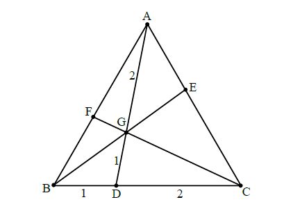 \(\frac{{{\rm{AF}}}}{{{\rm{FB}}}} \times \frac{{{\rm{BD}}}}{{{\rm{DC}}}} \times \frac{{{\rm{CE}}}}{{{\rm{EA}}}} = - 1\)