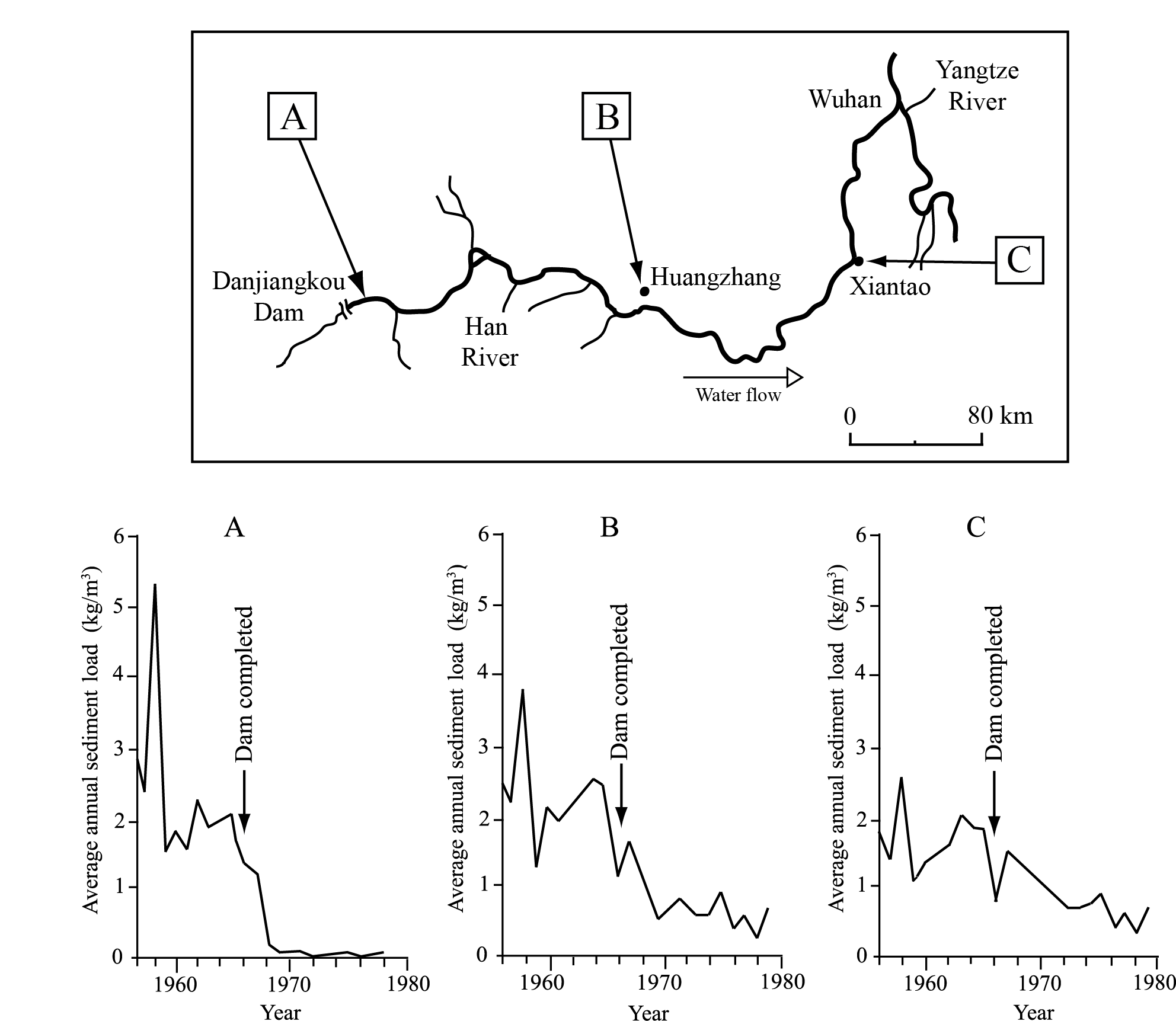 Using examples, examine the hydrological impacts that can result from the construction of a dam and reservoir across a river channel.