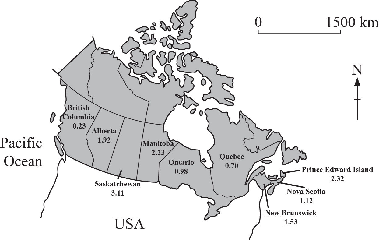 The overall pattern is of distance decay from Saskatechewan with the provinces in eastern Canada representing an anomaly. Award 1 mark each for any valid statements.