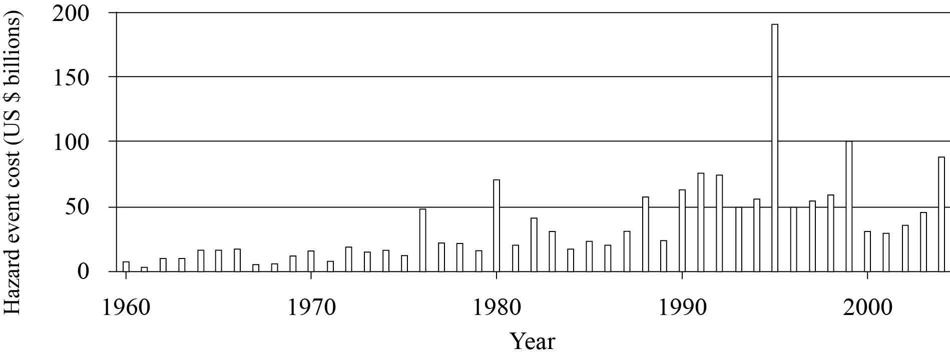 Disasters are less predictable because the final intensity/magnitude of the hazard event, the resilience of defences and structures, and the extent of the area affected are unknown until after the event. The density of the population and wealth of the area affected are also contributory factors that mean the scale of disaster is not known until after the event when financial reckoning occurs.