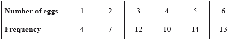 In a particular week, the number of eggs laid by each hen on a farm was counted. The results are summarized in the following table.