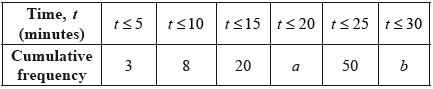 The results are represented in the cumulative frequency table below, with upper class boundaries of 10, 20, 30, 40, 50.