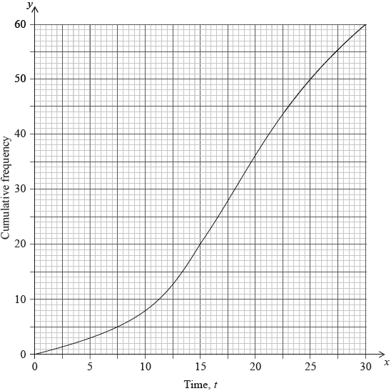 This information is shown in the following cumulative frequency graph.