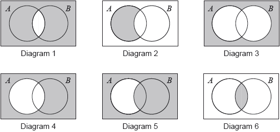 Write down an expression, in set notation, for the shaded region represented by Diagram 1.