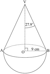 A type of candy is packaged in a right circular cone that has volume \({\text{100 c}}{{\text{m}}^{\text{3}}}\) and vertical height 8 cm.