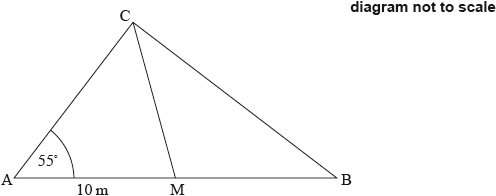 \({\text{AC}}\,\, = \,\,5.62{\text{m}}\,\,\,( = 5.61684...{\text{m}})\) (A1) (C2)