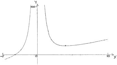 Sketch the graph of the function f, for −3 ≤ x ≤ 6 and −7 ≤ y ≤ 15. Indicate clearly the point P and any intercepts of the curve with the axes.