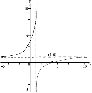 (b) Determine an expression for the inverse function, \({f^{ - 1}}\), and write down its domain.