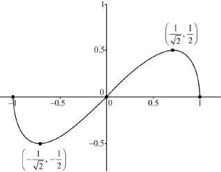 \(x \geqslant \frac{{\sqrt 2 }}{2}\,\,\,\,\,\left( {{\text{accept }}x \geqslant \frac{1}{{\sqrt 2 }}} \right)\) (A1)