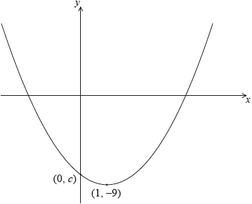The vertex is at \((1,{\text{ }} - 9)\), and the graph crosses the y-axis at the point \((0,{\text{ }}c)\).