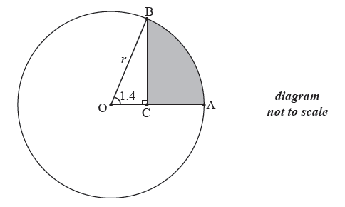 Points A and B are on the circumference of the circle and \({\rm{A}}\hat {\rm{O}}{\rm{B}} = 1.4\) radians .