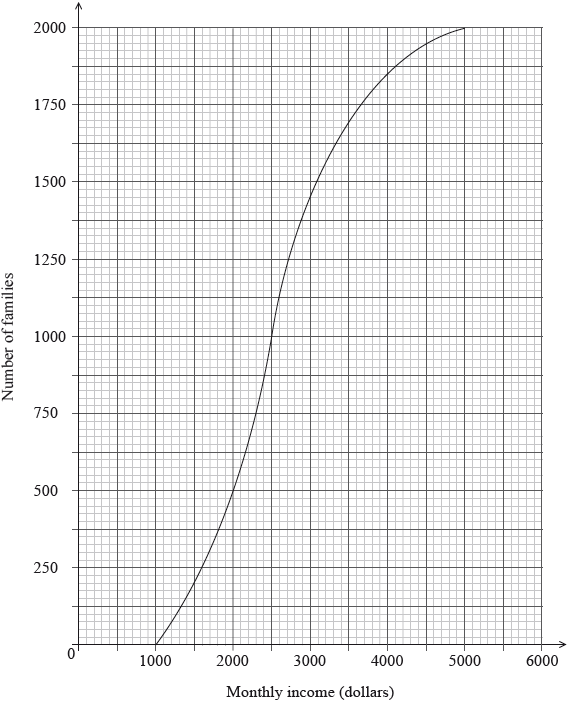 (i)     Write down the number of families who have a monthly income of \(2000\) dollars or less.