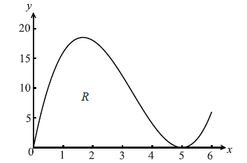 Let \(f(x) = x{(x - 5)^2}\) , for \(0 \le x \le 6\) . The following diagram shows the graph of f .