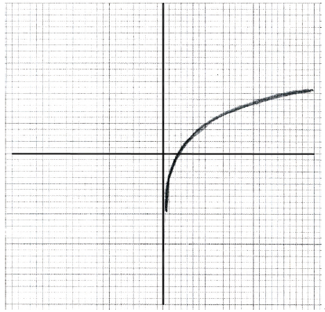 Note: Award A1 for sketch approximately through \((0.5 \pm 0.1{\text{, }}0 \pm 0.1)\) , A1 for approximately correct shape, A1 for sketch asymptotic to the y-axis.