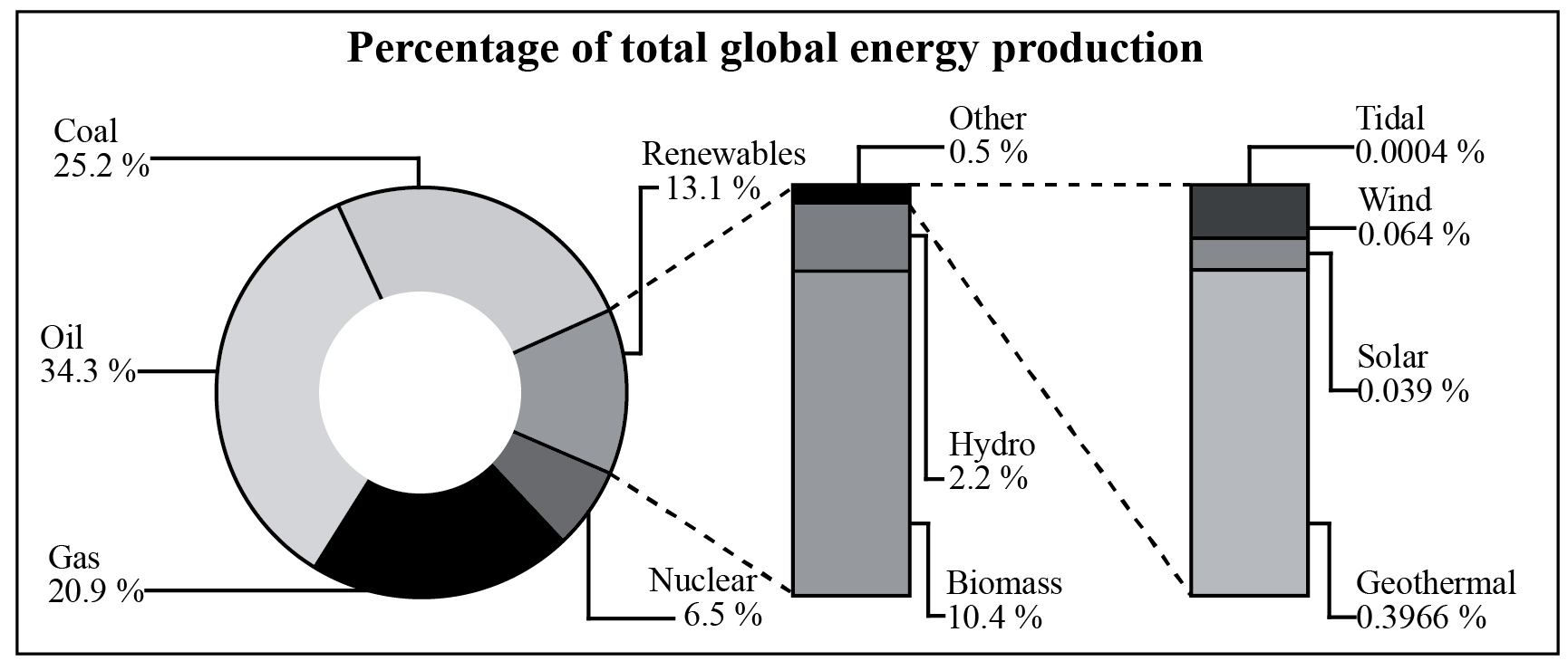 The graph shows the different sources of global energy production.