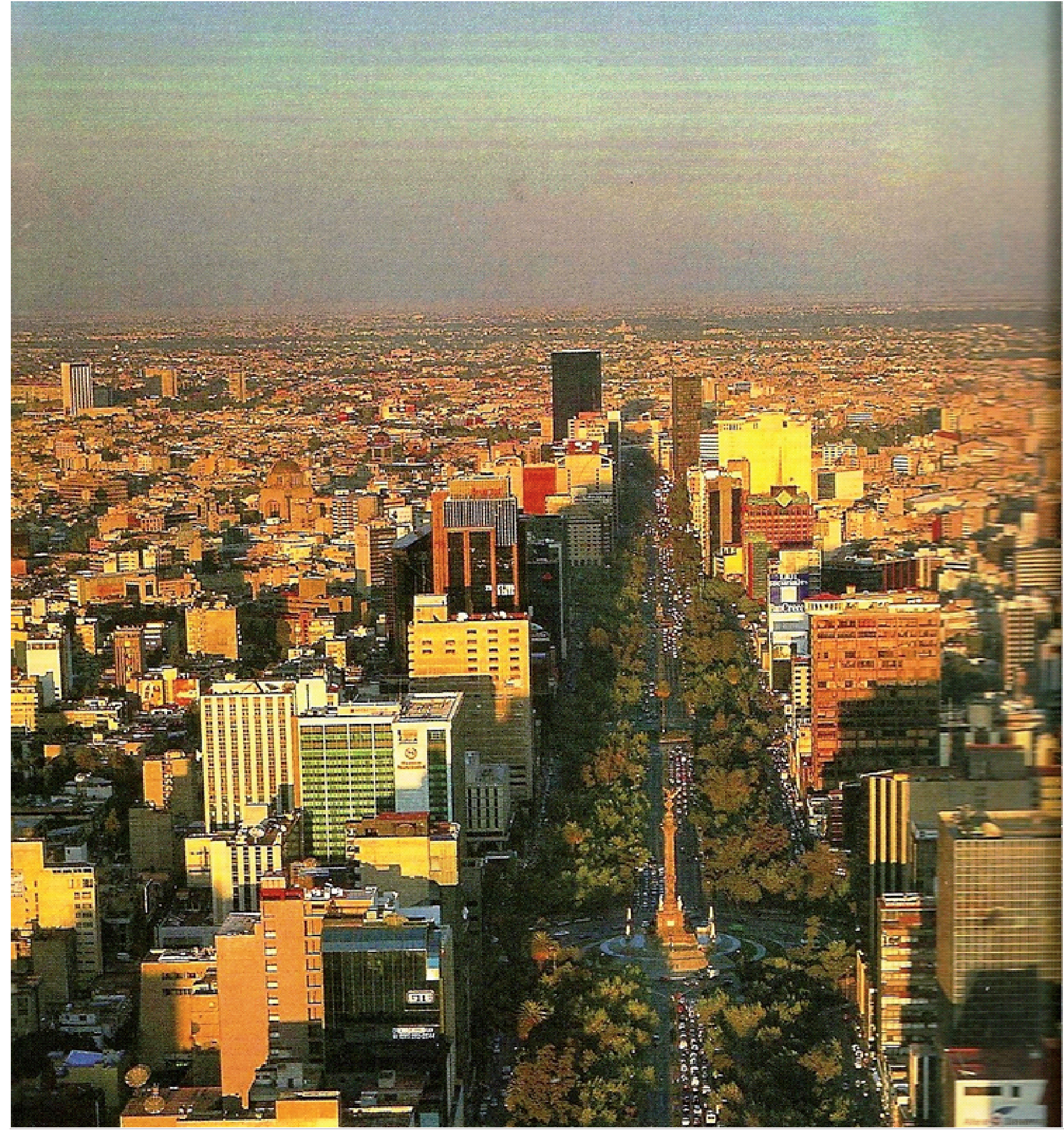 The photograph shows Reforma Avenue, one of the most important streets in Mexico City.