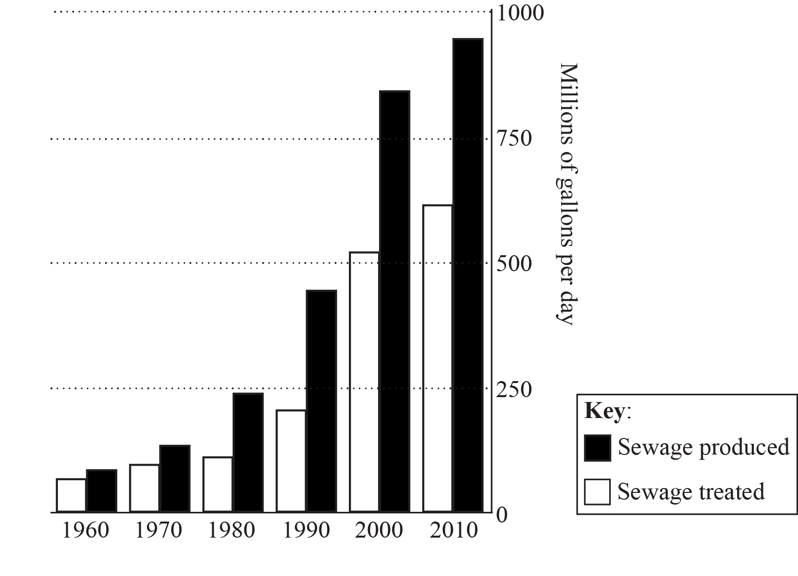 - Biggest increase between 1990 and 2000 in sewage produced and sewage treated
