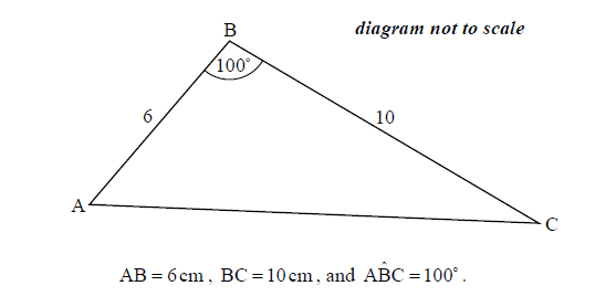 eg \({\text{A}}{{\text{C}}^2} = {\text{A}}{{\text{B}}^2} + {\text{B}}{{\text{C}}^2} - 2({\text{AB}})({\text{BC}})\cos ({\rm{A\hat BC}})\)