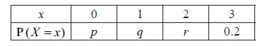 Given that \({\rm{E}}(X) = 1.4\) , find the value of p and of q .