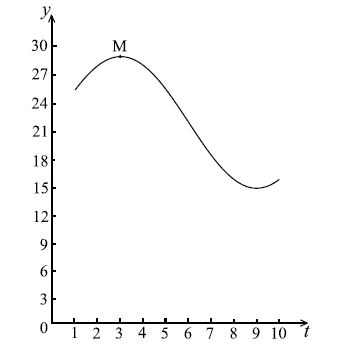 Let \(f(t) = a\cos b(t - c) + d\) , \(t \ge 0\) . Part of the graph of \(y = f(t)\) is given below.