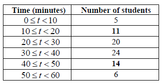 The following is a cumulative frequency diagram for the time t, in minutes, taken by 80 students to complete a task.