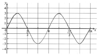 Note: Award A1 for amplitude of 3, A1 for their period, A1 for a sine curve passing through \((0{\text{, }}0)\) and \((0{\text{, }}2\pi )\) .