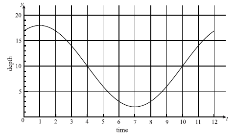 The following graph shows the depth of water, y metres , at a point P, during one day. The time t is given in hours, from midnight to noon.
