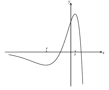 Part of the graph of \(y = f(x)\), for \( - 6 \le x \le 2\) , is shown below. The x-coordinates of the local minimum and maximum points are r and s respectively.
