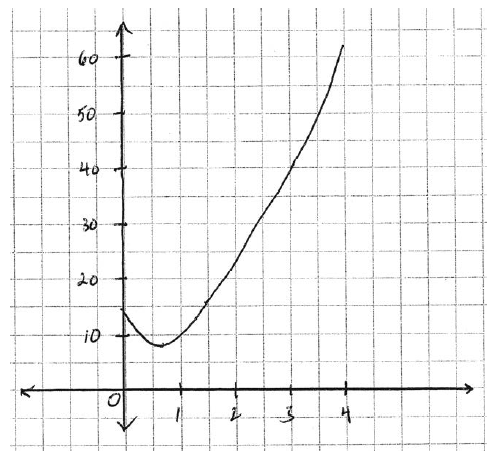 Note: Award A1 for shape, A1 for minimum at approximately \((0.7{\text{, }}9)\), A1 for domain.