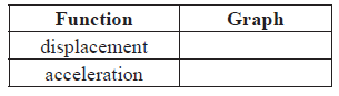 The following diagram shows the graphs of the displacement, velocity and acceleration of a moving object as functions of time, t.