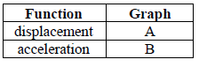 Many candidates answered this question completely and correctly, showing a good understanding of the graphical relationship between displacement, velocity and acceleration. When done incorrectly, many answered with the displacement as graph B and acceleration as graph C.