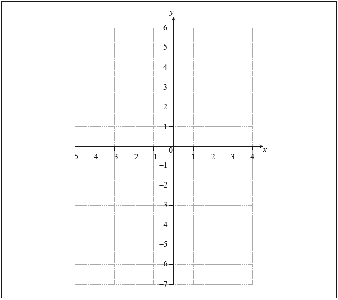 In part (c), although most candidates were familiar with the general parabolic shape of the graph, many placed the vertex at the \(y\)-intercept \((0,{\text{ }} - 6)\), and very few candidates considered the endpoints of the function with the given domain.