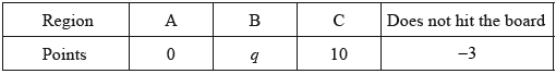 A game consists of a contestant throwing one dart at the board. The probability of hitting each region is given in the following table.