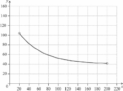 Let \(G(x) = 95{{\text{e}}^{( - 0.02x)}} + 40\), for \(20 \le x \le 200\).