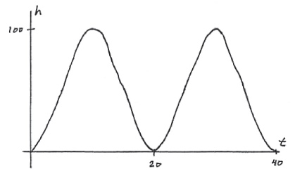 Note: Award A1 for end points (0, 0) and (40, 0) , A1 for range \(0 \le h \le 100\) , A1 for approximately correct sinusoidal shape, with two cycles.