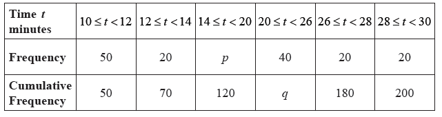 The times taken by the group of girls to complete the race are shown in the table below.