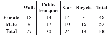 - 14M.1.sl.TZ2.8a: Find the expected frequency for the females who use public transport to get to school.