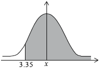 Use your graphic display calculator to calculate the probability that a randomly chosen tree will have a height greater than \({\text{3.35 m}}\).