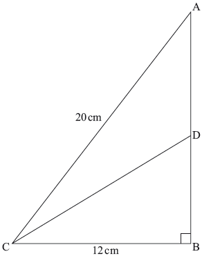 In triangle \({\text{ABC}}\), \({\text{AC}} = 20 {\text{ cm}}\), \({\text{BC}} = 12 {\text { cm}}\) and \({\rm{A\hat BC}} = 90^\circ\).