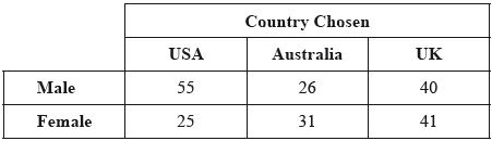 A study was carried out to determine whether the country chosen by students for their university studies was influenced by a person’s gender. A random sample was taken. The results are shown in the following table.