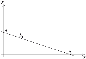 The diagram shows the straight line \({L_1}\), which intersects the \(x\)-axis at \({\text{A}}(6,{\text{ }}0)\) and the \(y\)-axis at \({\text{B}}(0,{\text{ }}2)\) .