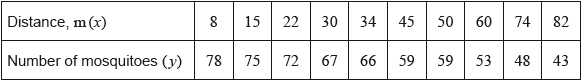 It is believed the number of mosquitoes caught varies linearly with the distance, in metres, of the trap from the lake.