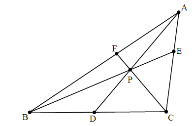 \(\frac{{{\rm{AE}}}}{{{\rm{EC}}}} \times \frac{{{\rm{CB}}}}{{{\rm{BD}}}} \times \frac{{{\rm{DP}}}}{{{\rm{PA}}}} = - 1\) M1A1