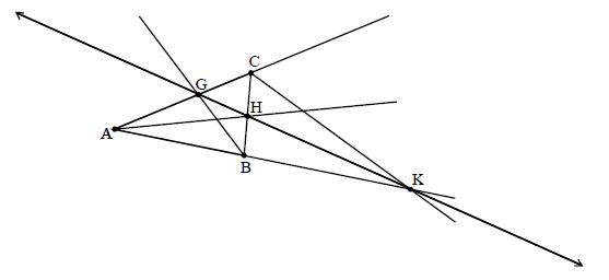 hence, by converse Menelaus’ theorem, G, H and K are collinear R1