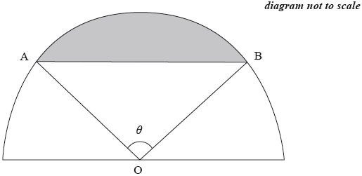 The diagram below shows a semi-circle of diameter 20 cm, centre O and two points A and B such that \({\rm{A\hat OB}} = \theta \), where \(\theta \) is in radians.