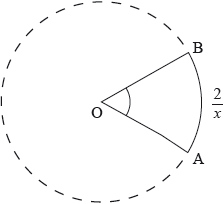 The following diagram shows a sector of a circle where \({\rm{A\hat OB}} = x\) radians and the length of the \({\text{arc AB}} = \frac{2}{x}{\text{ cm}}\).