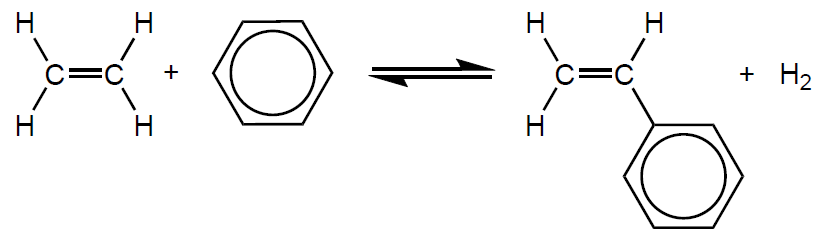 Phenylethene is manufactured from benzene and ethene in a two-stage process. The overall reaction can be represented as follows with ΔGθ = +10.0 kJ mol−1 at 298 K.