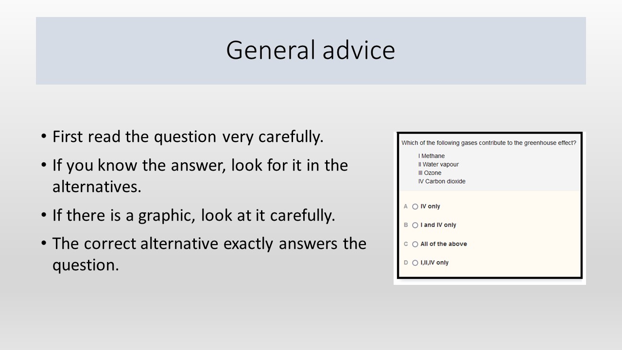 These slides give advice from an examiner about how to approach multiple choice questions.