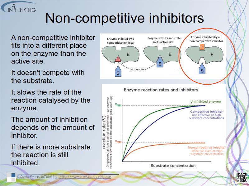 - Non-competitive inhibitors. E.g. Drugs for treatment of malaria.