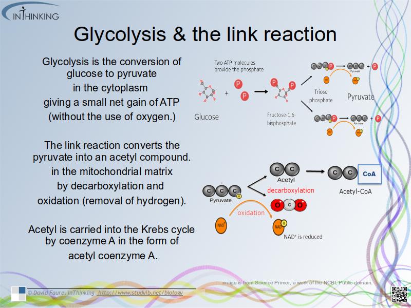 • In the link reaction acetyl is attached to coenzyme A to form acetyl coenzyme A.